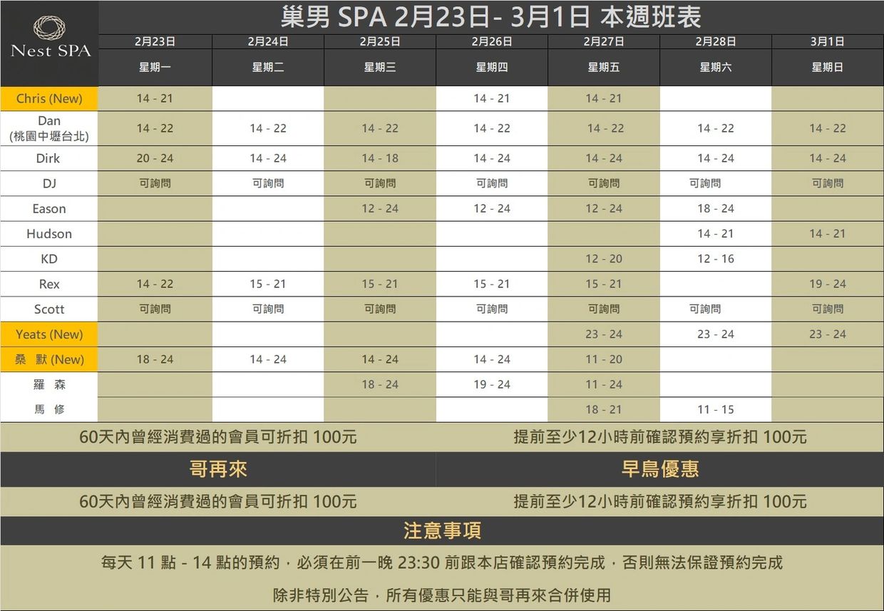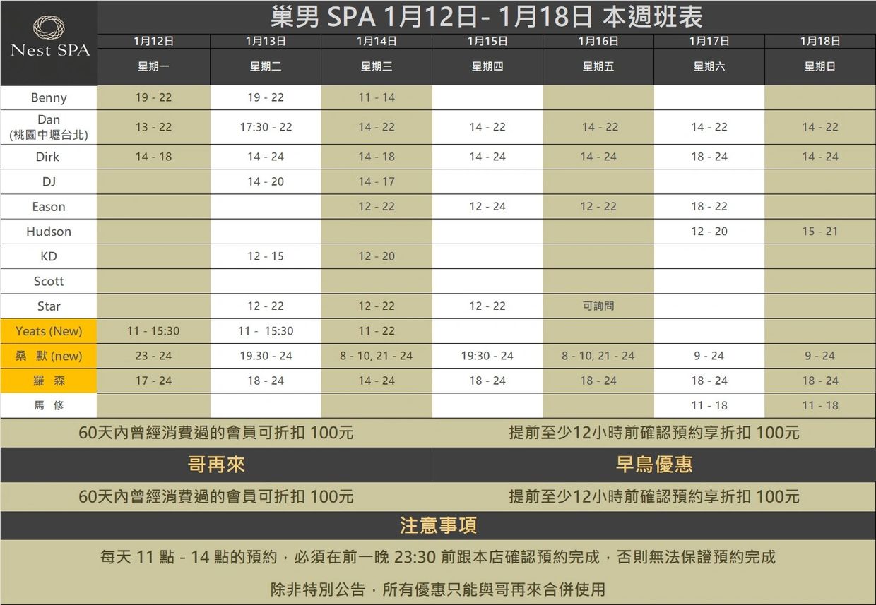 巢男孩俱樂部聲明:本工作室僅提供一般按摩預約,不提供任何非法服務,所有貴賓與服務人員的個人行為與本工作室無關。